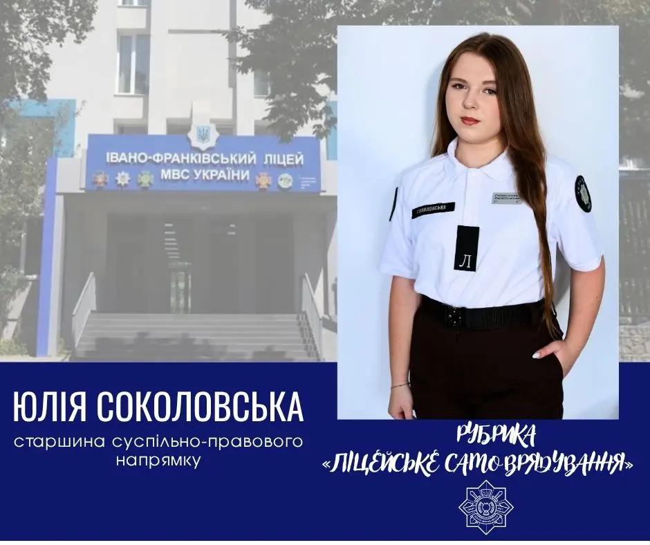 ✅️ Сьогодні знайомимо читачів із Юлею Соколовською - старшиною суспільно-правового напряму.