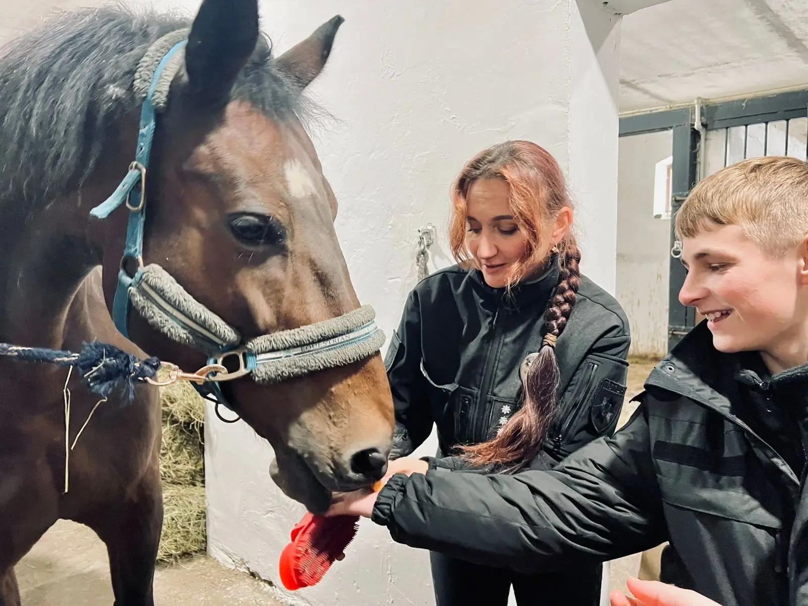 Вихованці Івано-Франківського ліцею імені Андрія Приймаченка МВС за сприяння психологів поліції Івано-Франківщини відвідали кінно-спортивний клуб «Кагава» на Тлумаччині 🐎💙💛.